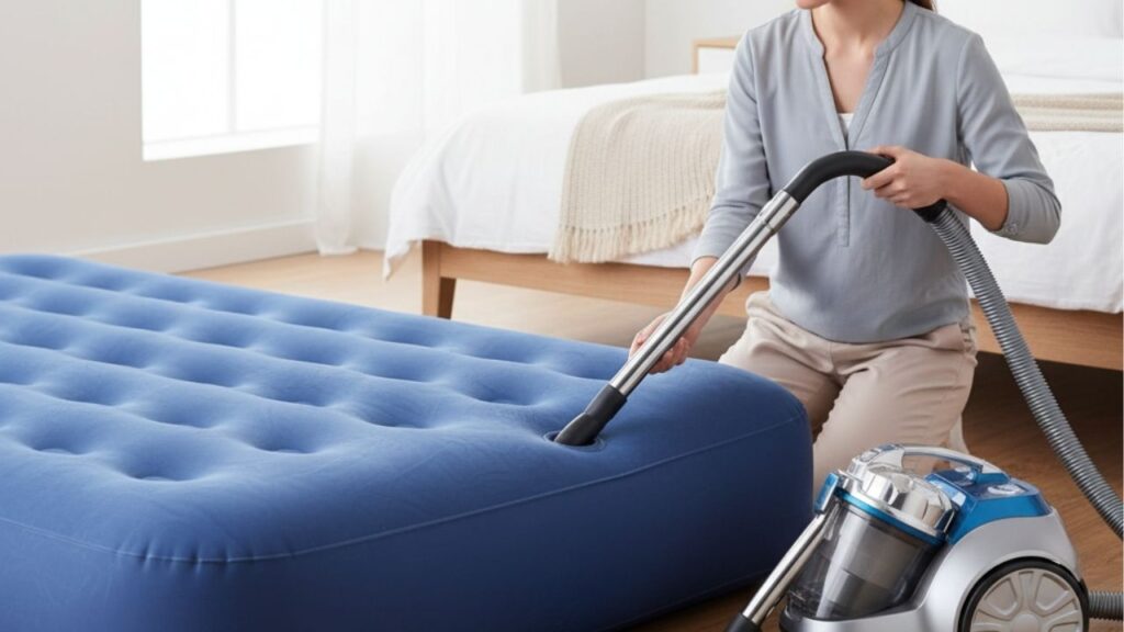 O aspirador de pó pode inflar colchões ao direcionar o fluxo de ar para a válvula, funcionando como um compressor improvisado. Para isso, é preciso conectar a saída de ar do aparelho diretamente na válvula do colchão inflável.